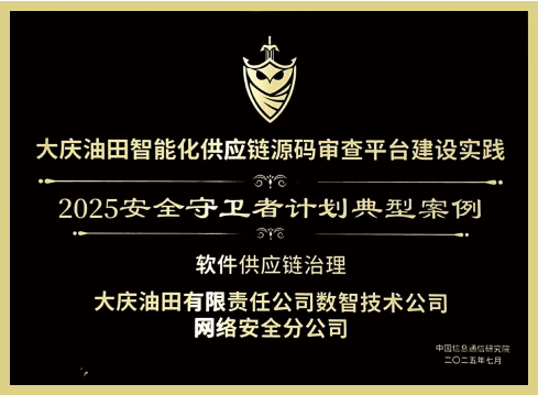 The "Practice of Building an Intelligent Supply Chain Source Code Review Platform at Daqing Oilfield" was selected as a typical case in the China Academy of Information and Communications Technology's 2025 Security Guardian Program.